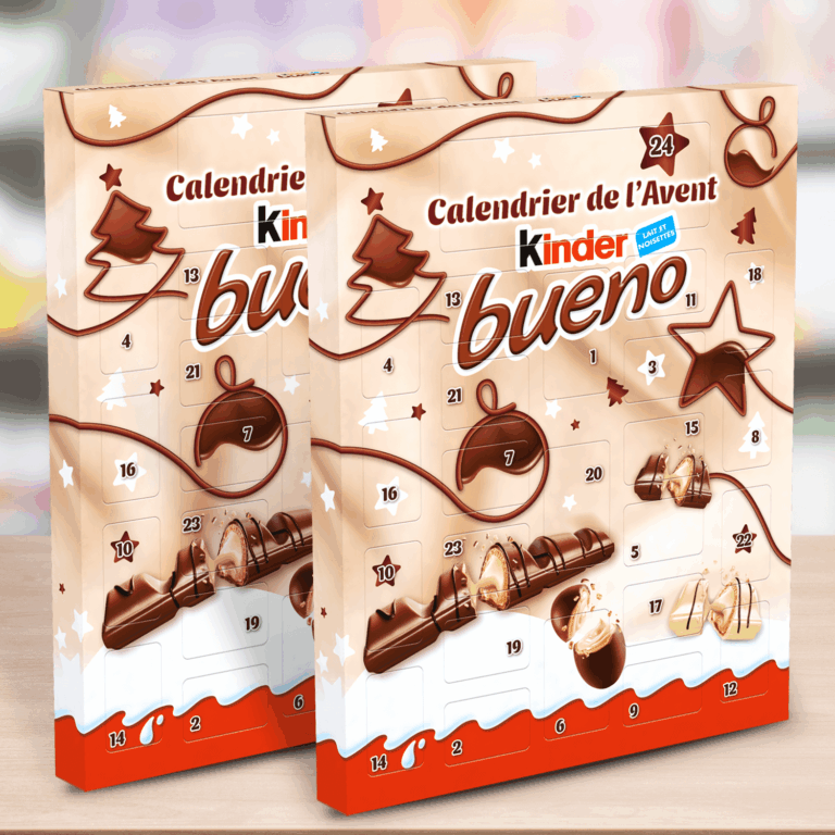 Pour Kinder Bueno, nous avons imaginé et réalisé un calendrier de l’Avent devenu emblématique. L’objectif : transposer les saveurs iconiques de la marque dans un univers de Noël généreux, texturé et ultra-gourmand. Grâce à un travail minutieux sur la direction artistique, les textures, le mix produit et la modernisation du pack, nous avons conçu un dispositif jeune, attractif et profondément immersif, parfaitement aligné avec l’ADN Kinder.